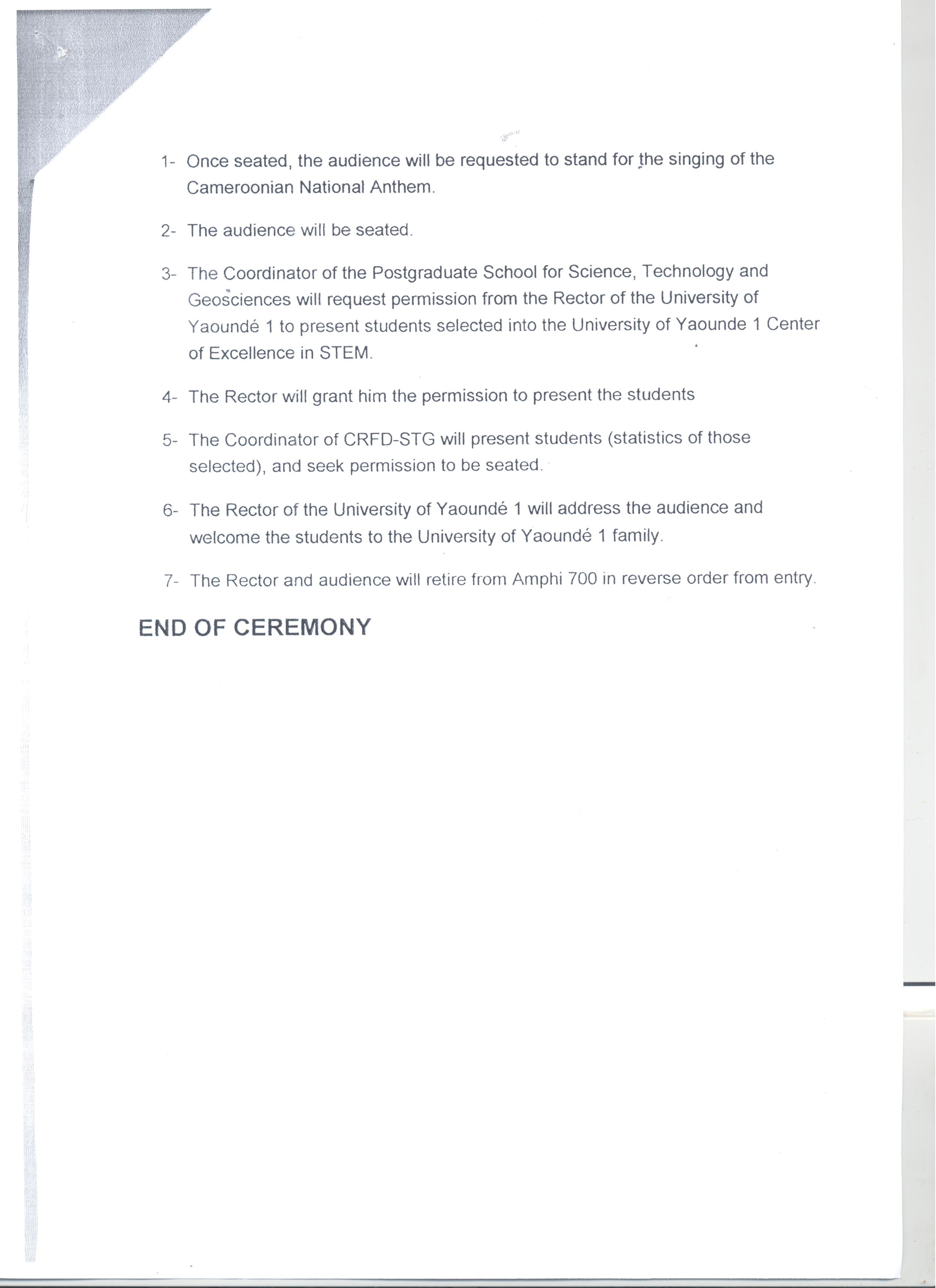 Vous êtes cordialement invités à bien vouloir prendre part au lancement officiel de l’Année Académique 2015-2016, par le Recteur de l’Université de Yaoundé I à l’Amphi 700, le mercredi 27 janvier 2016 à 14heures précises.